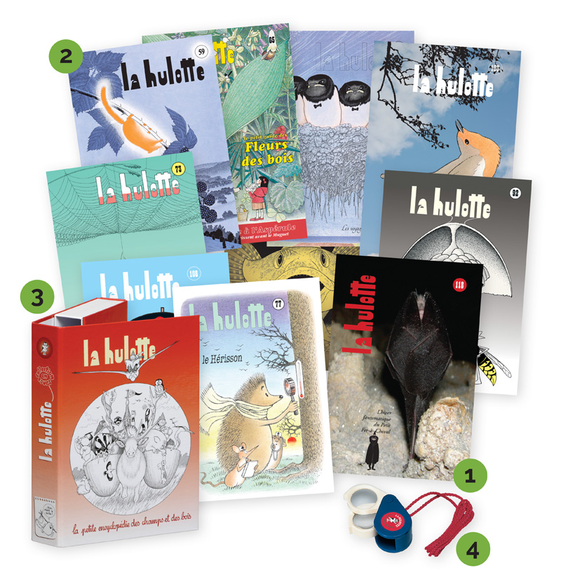 - L’abonnement à la Hulotte du n° 118 jusqu’au n° 123 (un numéro par semestre environ)